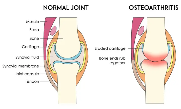 Long periods of stress on your joints can also result in cartilage damage. This is especially so in load-bearing joints like the knee joints if you are overweight or obese. This prolonged stress can eventually lead to loss of cartilage in the joints, known as osteoarthritis.